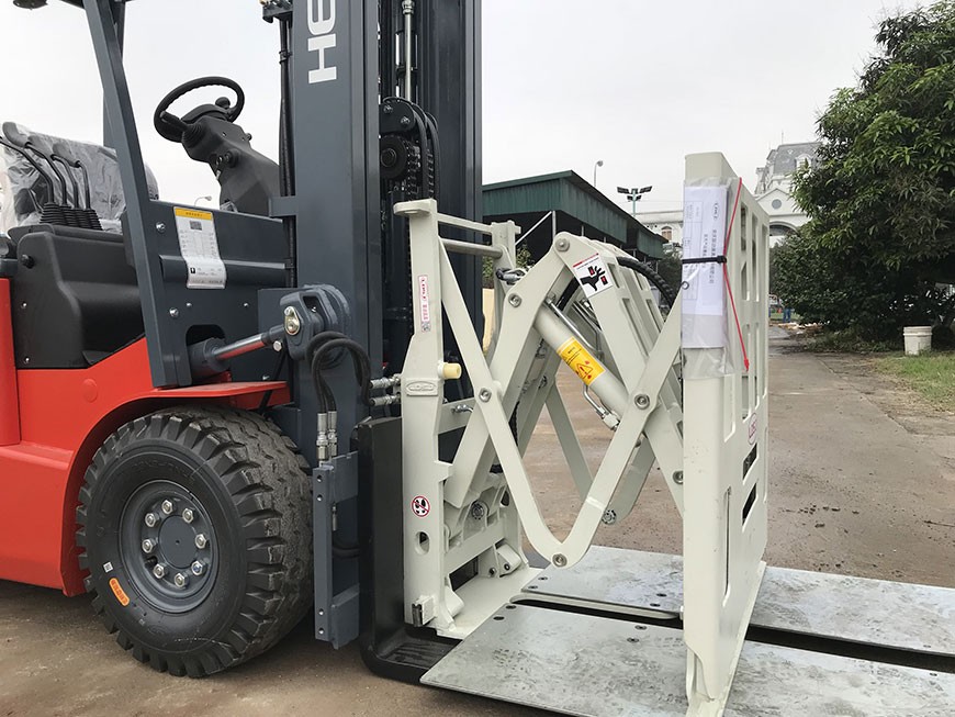 Kéo đẩy hàng tối đa 2000 kg, đẩy ra xa nhất 1230 mm, Được dùng cho xe nâng hàng 3- 4.5 tấn.