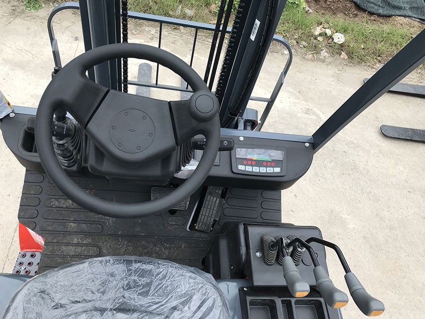 Có vô lăng lái nhỏ đầy đủ còi, tay gạt điện tử di chuyển tiến lùi. Tay gạt xi nhan, đèn chiếu sáng. Ghế ngồi cảm biến OPS mang lại tiện nghi cho người lái.